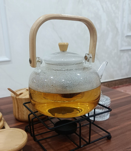 کتری قوری پیرکس شعله مستقیم شفاف درب بامبو