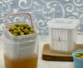 متاسفانه این کالا در حال حاضر موجود نیست. میتوانید از طریق لیست بالای صفحه، از محصولات مشابه این کالا دیدن نمایید.ظرف نگهدارنده خیارشور و زیتون با سبد جداکننده آب، مناسب برای نگهداری انواع ترشیجات و لبنیات است.