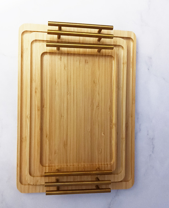 سینی سه عددی مستطیلی بامبو دسته دار طلایی بدون تغییر رنگ