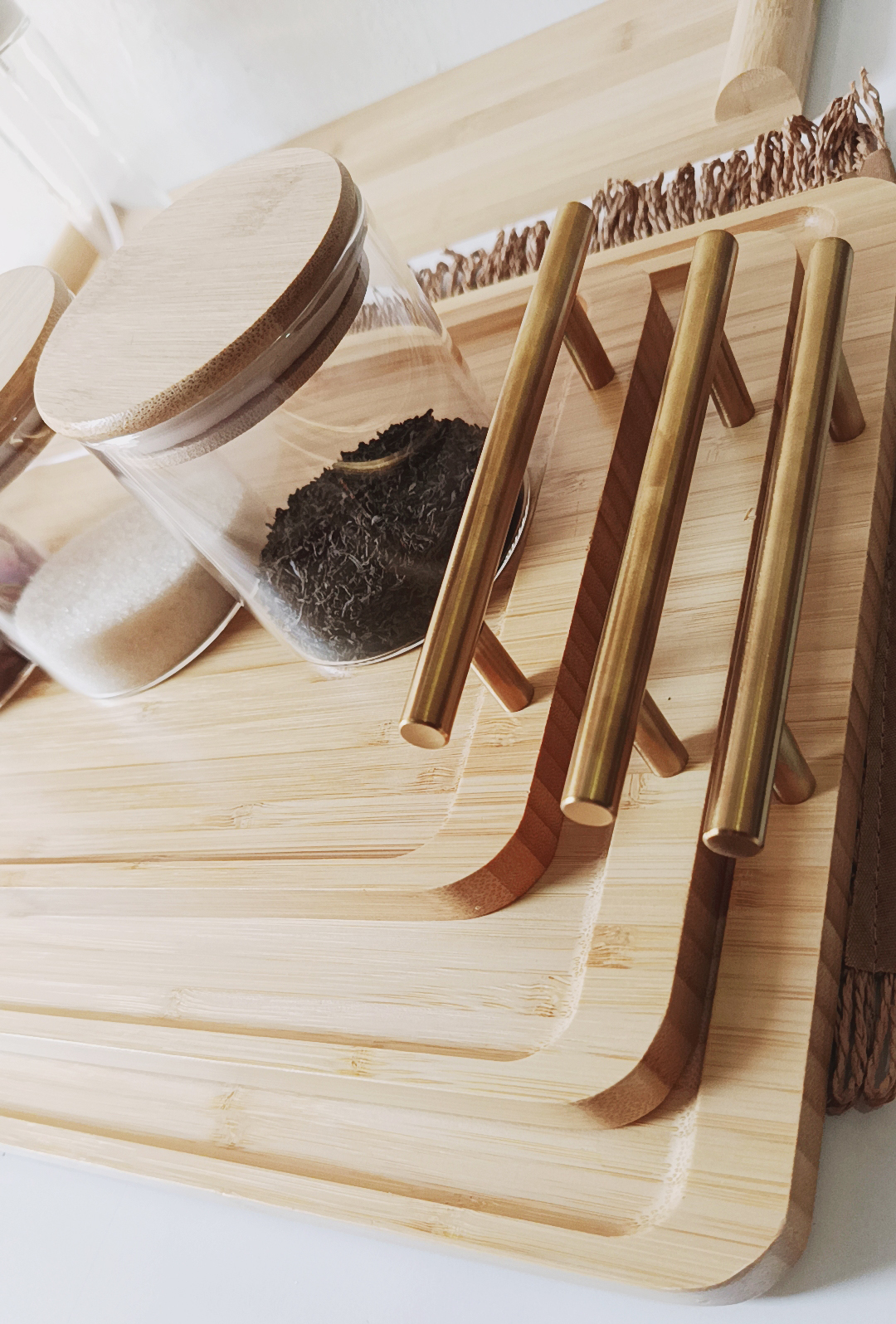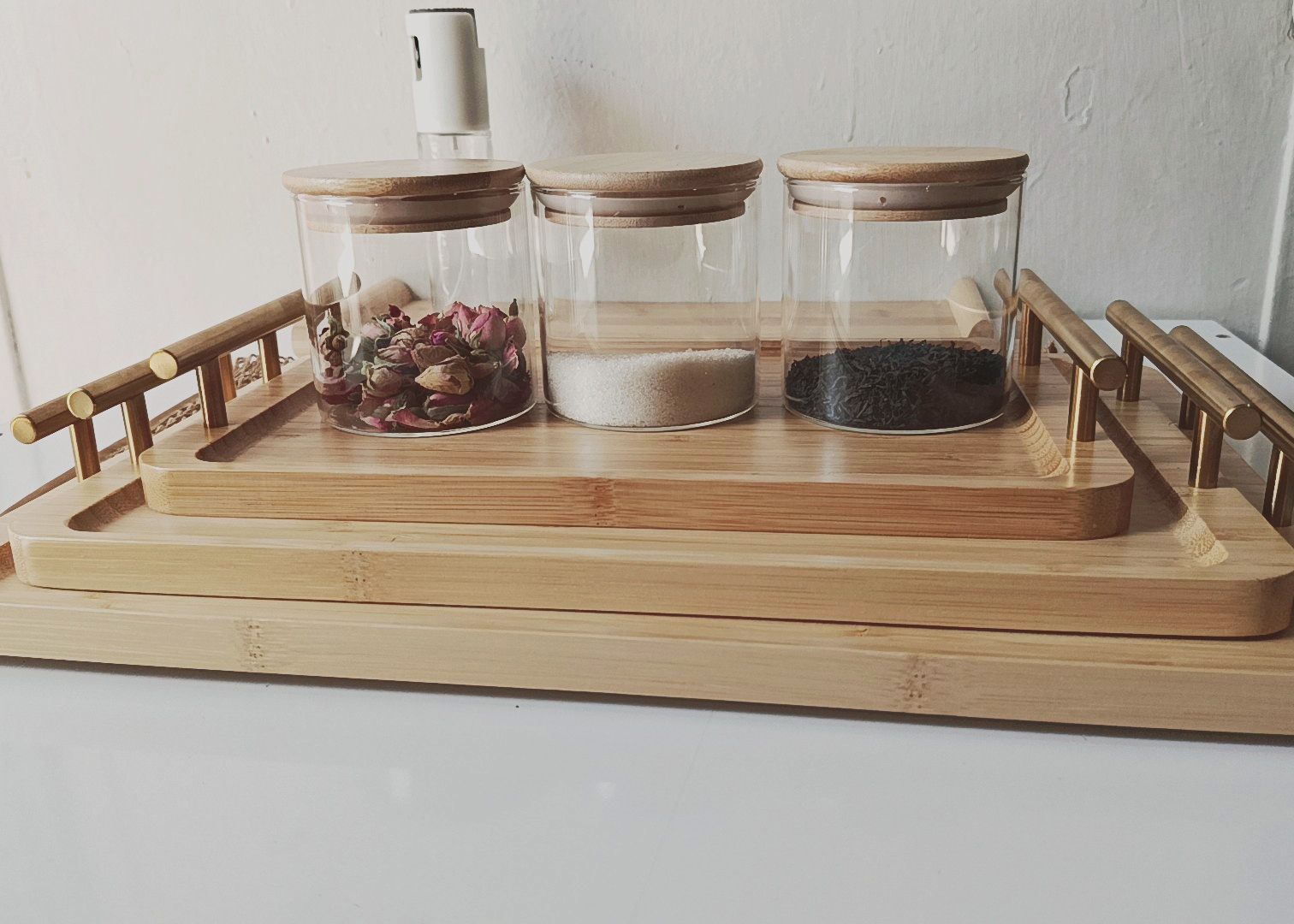 سینی سه عددی مستطیلی بامبو دسته دار طلایی بدون تغییر رنگ