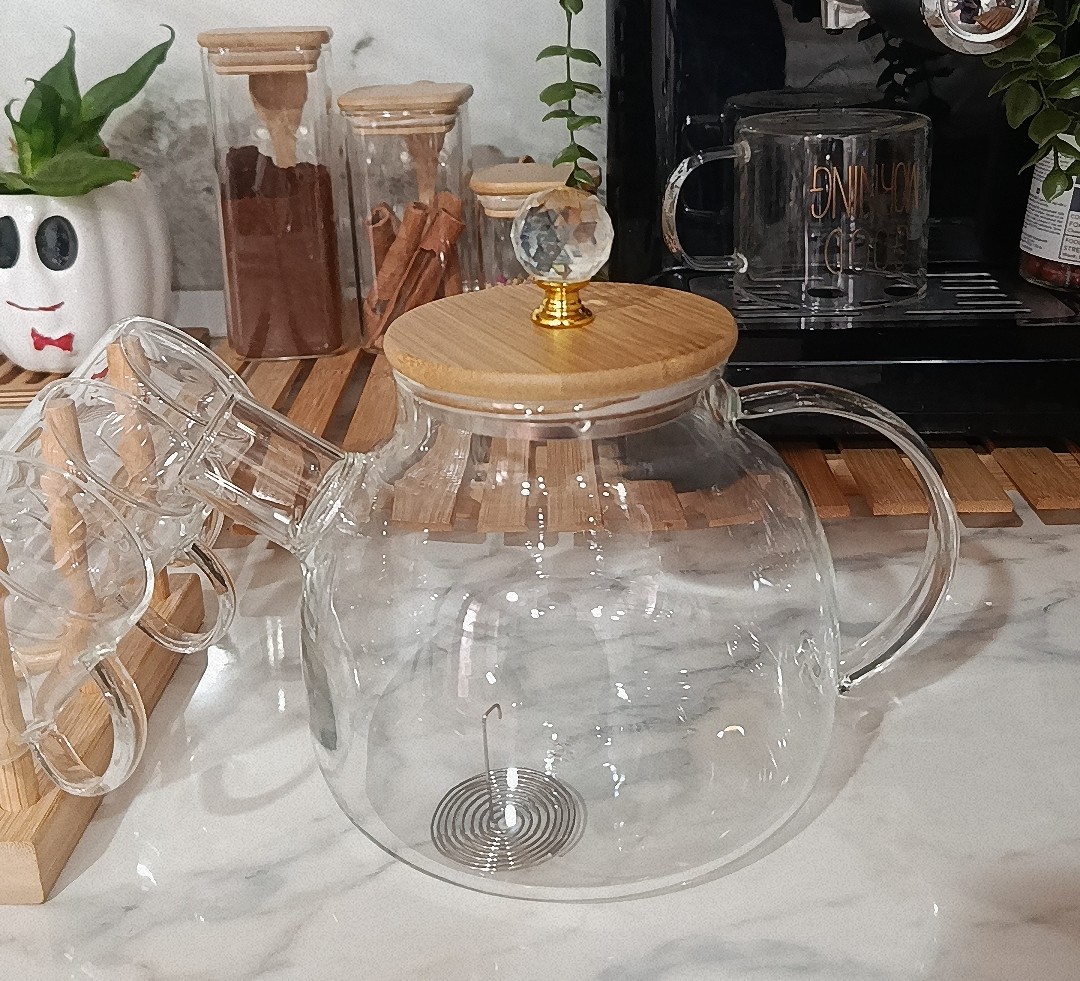 ست قوری و فنجان پیرکس با استند چوبی: قوری و فنجان و استند قوری پیرکس یک لیتری قابل استفاده روی شعله شش عدد فنجان فنجان ۶۰میل جنس استند: بامبو