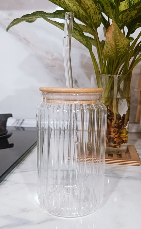 این مدل با بدنه شیشهای راهراه از جنس پیرکس مقاوم، درب شیک از جنس بامبو طبیعی و نی شفاف پیرکس ارائه میشه. با حجم حدود ۴۵۰ میلیلیتر، برای انواع اسموتی، نوشیدنی سرد، میلکشیک، دمنوش سرد یا حتی آب میوه عالیه.