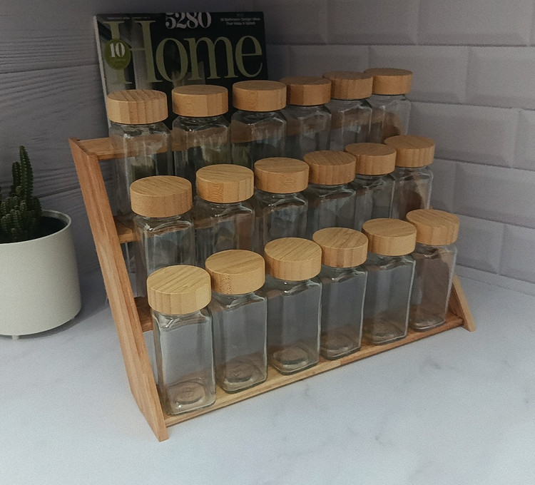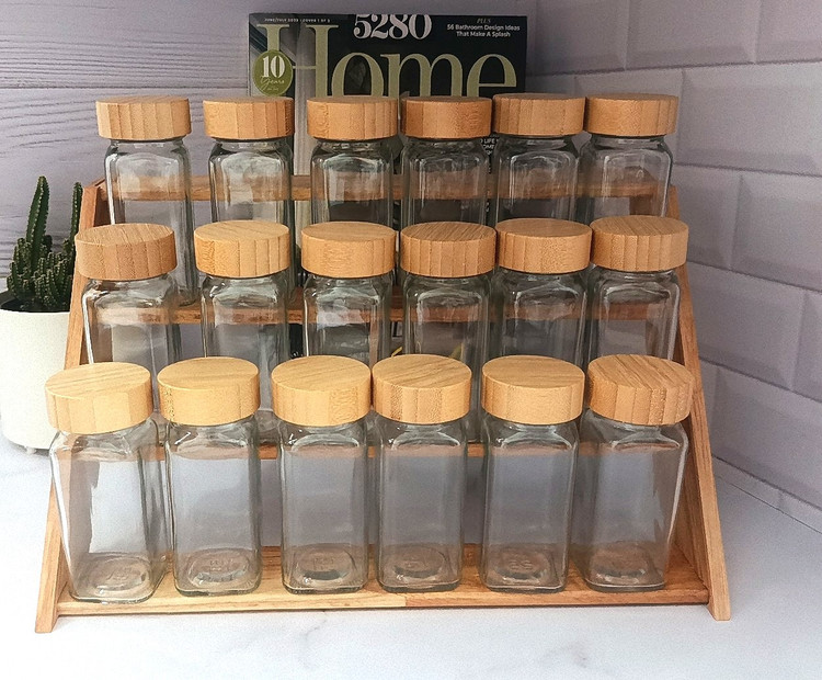 18عدد شیشه ادویه 11 سانتیمتری با درب چوبی – طراحی ساده و لوکس برای نگهداری انواع ادویه.