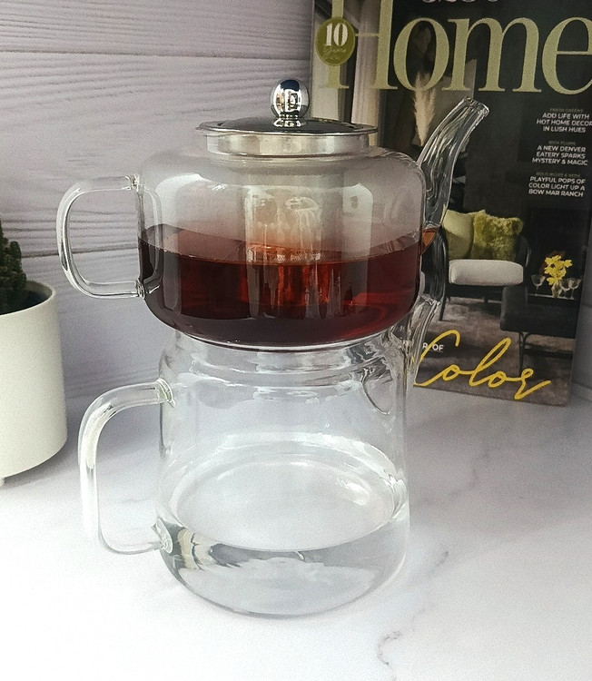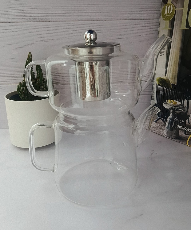 کتری و قوری پیرکس شعله مستقیم درب و فیلتر استیل