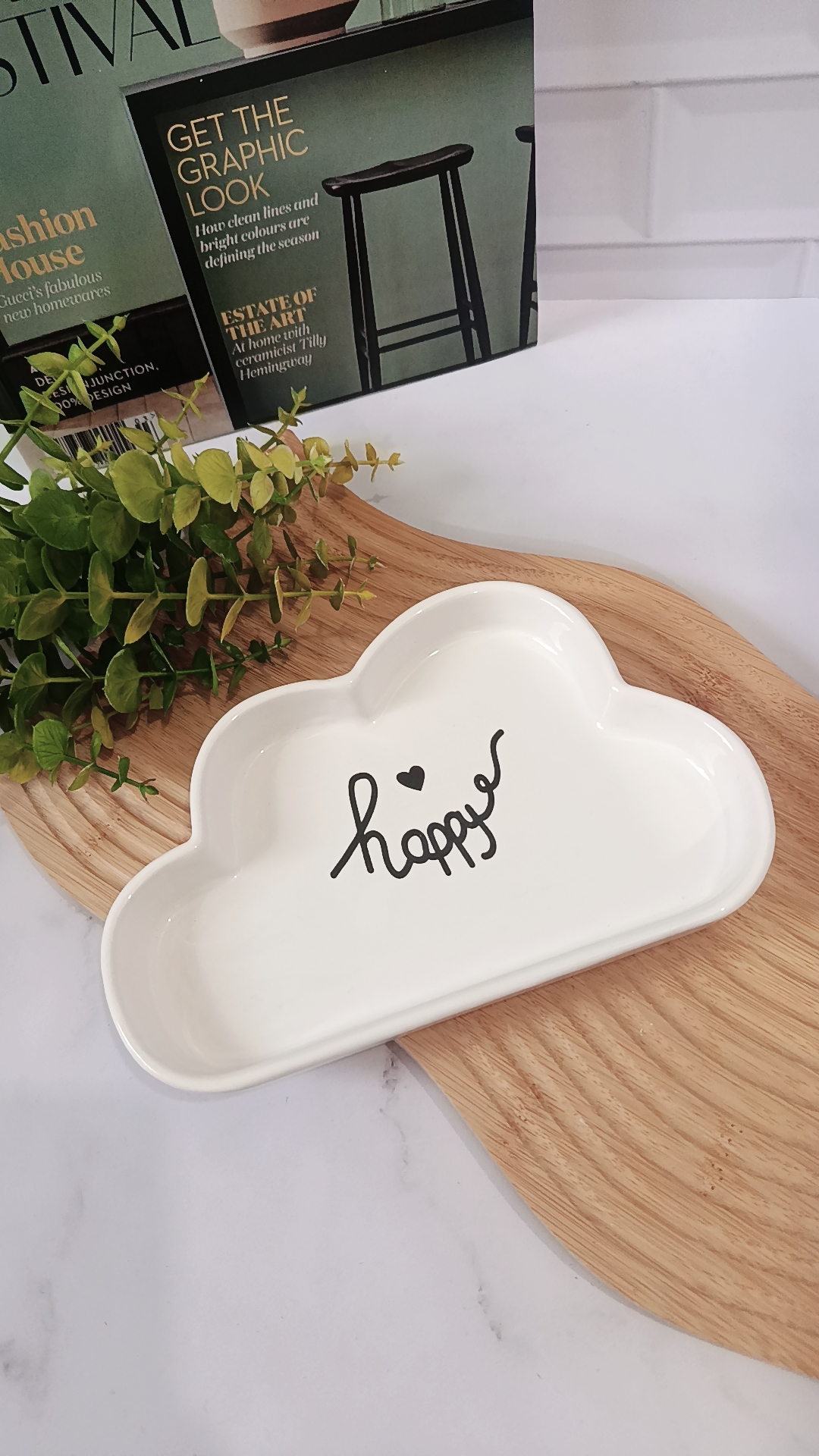ظرف سرو سرامیکی طرح ابر نوشته HAPPY