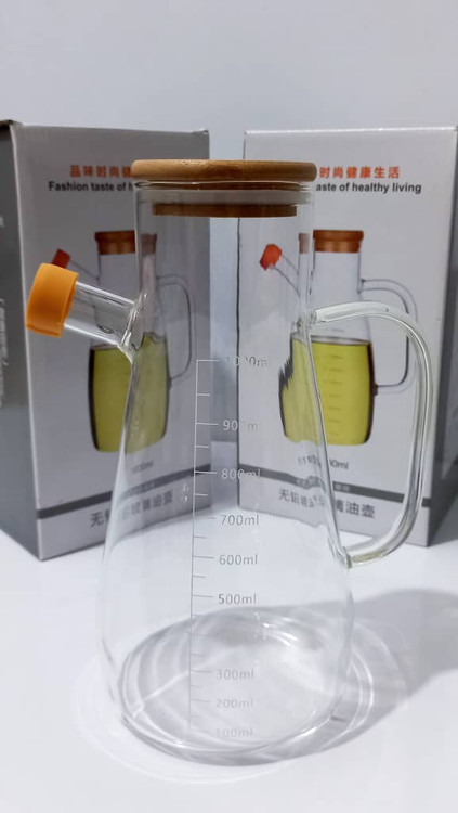 این روغن ریز از جنس پیرکس دارای درپوش از جنس پلاستیک و درب آن از جنس بامبو می باشد.بسیار مقاوم در برابر شعله مستقیم می باشد و مناسب برای استفاده به عنوان روغن ریز ،آبلیمو و سرکه و... است.حجم آن 1000میلی لیتر می باشد
