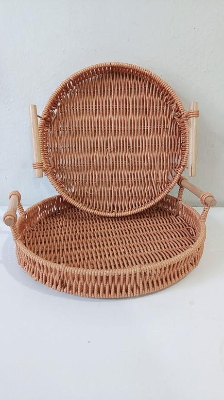 سینی پذیرایی حصیری مدل گرد دسته دار
