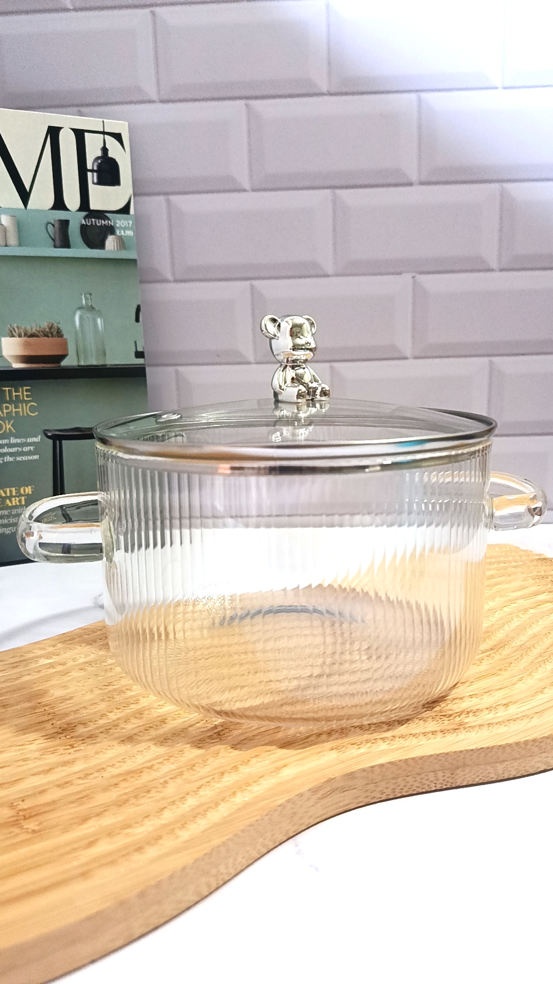 قابلمه پیرکس خرسی شعله مستقیم نقرهای ترکیبی از طراحی فانتزی و عملکرد حرفهای است که زیبایی و کاربرد را همزمان در آشپزخانه شما به ارمغان میآورد. این قابلمه از شیشه پیرکس مقاوم به حرارت و شوک دمایی ساخته شده و بهراحتی میتواند روی شعله مستقیم گاز قرار گیرد، بدون اینکه ترک بخورد یا تغییر رنگ دهد.